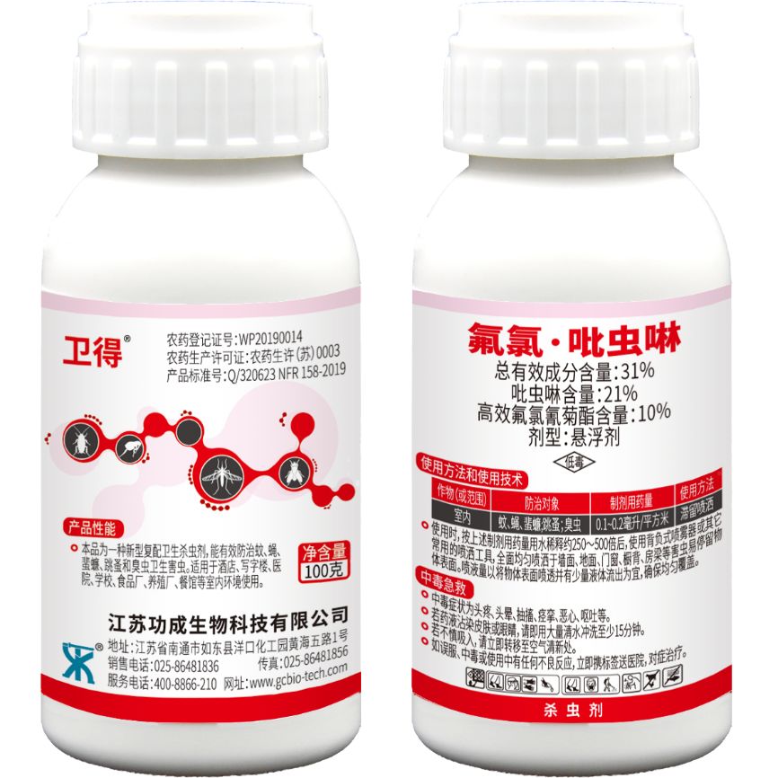 1、加强宣传教育工作:在跳蚤发生现场设立警示标志并在公告栏处贴出告示,防止人宠受到叮咬;同时规劝商户和游客不要随意给流浪猫喂食,转移喂食器。 2、环境治理:加强结构防护,及时修复破损的管道、门窗等,防止流浪猫狗侵入室内;最重要的是尽量减少同流浪猫狗的接触,接触后要及时进行清洁。此外可以对于室内缝隙进行封堵,利用胶水、水泥等对地面及墙壁的缝隙进行封堵,减少跳蚤的藏身处。在跳蚤发生地处理后需要进行清洁整理,移除非必须杂物,以防跳蚤再次危害。 3、化学防治:考虑到跳蚤习性,推荐使用触杀的方法针对游离蚤进行药物防治。 1)游离蚤:考虑到游离蚤数量较多,同时藏身环境比较复杂,因此选择使用滞留喷洒的方式进行防治。在发现有跳蚤踪迹的缝隙、墙角等处使用卫得®31%氟氯·吡虫啉悬浮剂按1:250倍稀释进行滞留喷洒。选择药剂时一定选用产品农药登记证上登记对象涵盖跳蚤的产品哦。 若跳蚤发生在部分敏感地区无法进行兑水喷药,可以选择使用大功达®0.6%高效氯氰菊酯粉剂直接喷洒到游离蚤发生的缝隙处。 2)寄生蚤:寄生蚤直接寄生于寄主身上,考虑到寄主的多样性和复杂性,而且目前并无相关法规规定可以直接接触动物的药物,所以针对于寄生蚤的处理主要还是以控制寄主为主。 施药后第二天进行效果回访,发现已经有大量的成虫死亡,但是仍有一部分跳蚤存活,在二次检查过程中,发现除去第一次检查时发现的教室有游离蚤发生外,还发现在杂物间也发现有游离蚤发生,需进行补防。经过二次检查和补防后,该早教中心的跳蚤得到了有效的控制。 通过上面的防治案例,现将跳蚤防治时的注意事项进行列举,供大家参考。 1)跳蚤防治重点在于准确寻找到游离蚤和寄生蚤的位置。在实际操作过程中,跳蚤防治较难一次完成,可能需要通过二次检查,进行适当的补防来达到较好地防治效果。 2)在进行药物防治时着重注意自身的防护工作,防止出现施药人员被跳蚤叮咬的现象。在进行施工之前需要注意着长筒胶靴、戴口罩、帽子;穿全身防护服,尤其注意袖口、裤口需系紧,施工完成后需要到现场外空旷处更换衣物,穿过的衣物及时进行清洗,防止衣物上的跳蚤危害。 3)进行防治过程中需要加强宣传教育工作进行,树立正确的观念;必须选择适宜的方式、方法关心流浪动物,在远离人居的地点设立喂食点或收容处,并做好动物的防蚤、灭蚤工作,否则可能会引蚤入室,对自身造成危害。 卫得®31%氟氯·吡虫啉悬浮剂(新品上市) 登记防治对象多,蚊蝇蟑跳蚤臭虫均可防治; 稀释倍数高,推荐稀释倍数250-500倍; 速效性强,持效期长,使用后痕迹很轻,是滞留喷洒选用的优秀药剂。 大功达® 0.6%高效氯氰菊酯粉剂 大功达® 8%高效氯菊酯可湿性粉剂 除此以外我们还有以下几款产品: (以下产品农药登记证登记对象均包含跳蚤):